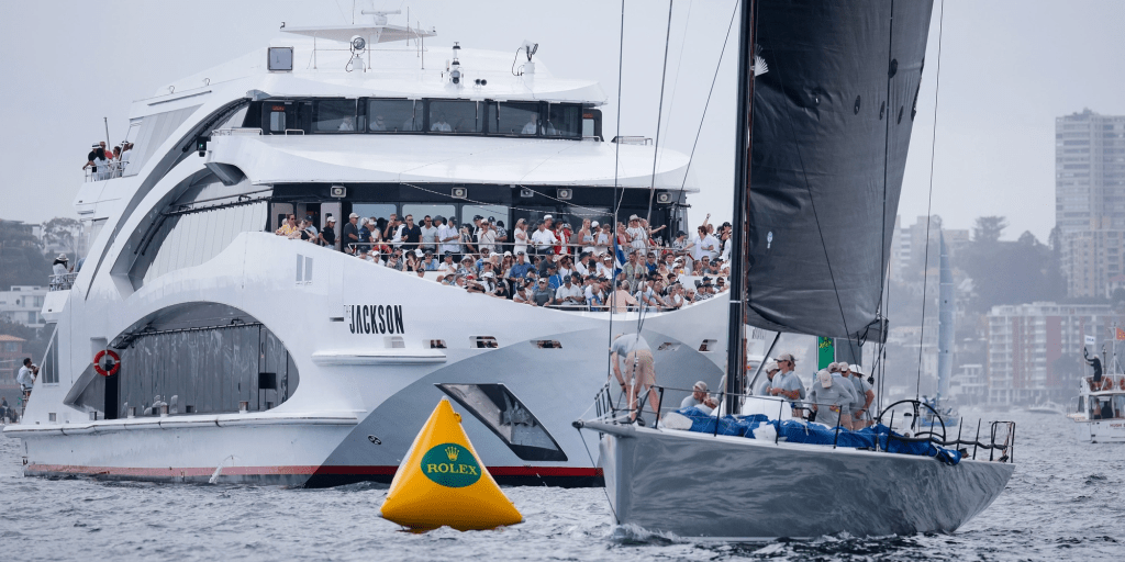 Spectators can watch the race for free. However, to gain access to the Sydney Harbour exclusion zone & be precisely on the start line, there is only 1 spectator boat allowed – the official spectator vessel. This year, the official spectator vessel is The Jackson, a luxury superyacht. Public access is only to the main deck, which has 270-degree views, with the mid & top decks reserved for private functions. New for 2024 are additional, even more comfortable, tables & seating. Tickets are $390 per person & are on sale usually from June. Apart from the race, The Jackson‘s main deck includes canapés, substantial snacks, premium beverages & a 5-meter light-emitting diode screen of the official television broadcast. Official event merchandise is also available for purchase on board. It departs from King Street Wharf 2.75 hours before the race start, returning 2 hours after the race start. Boarding begins half an hour prior to departure from King Street Wharf. There are many other private cruises available for purchase, but they are all are outside of the exclusion zone.
