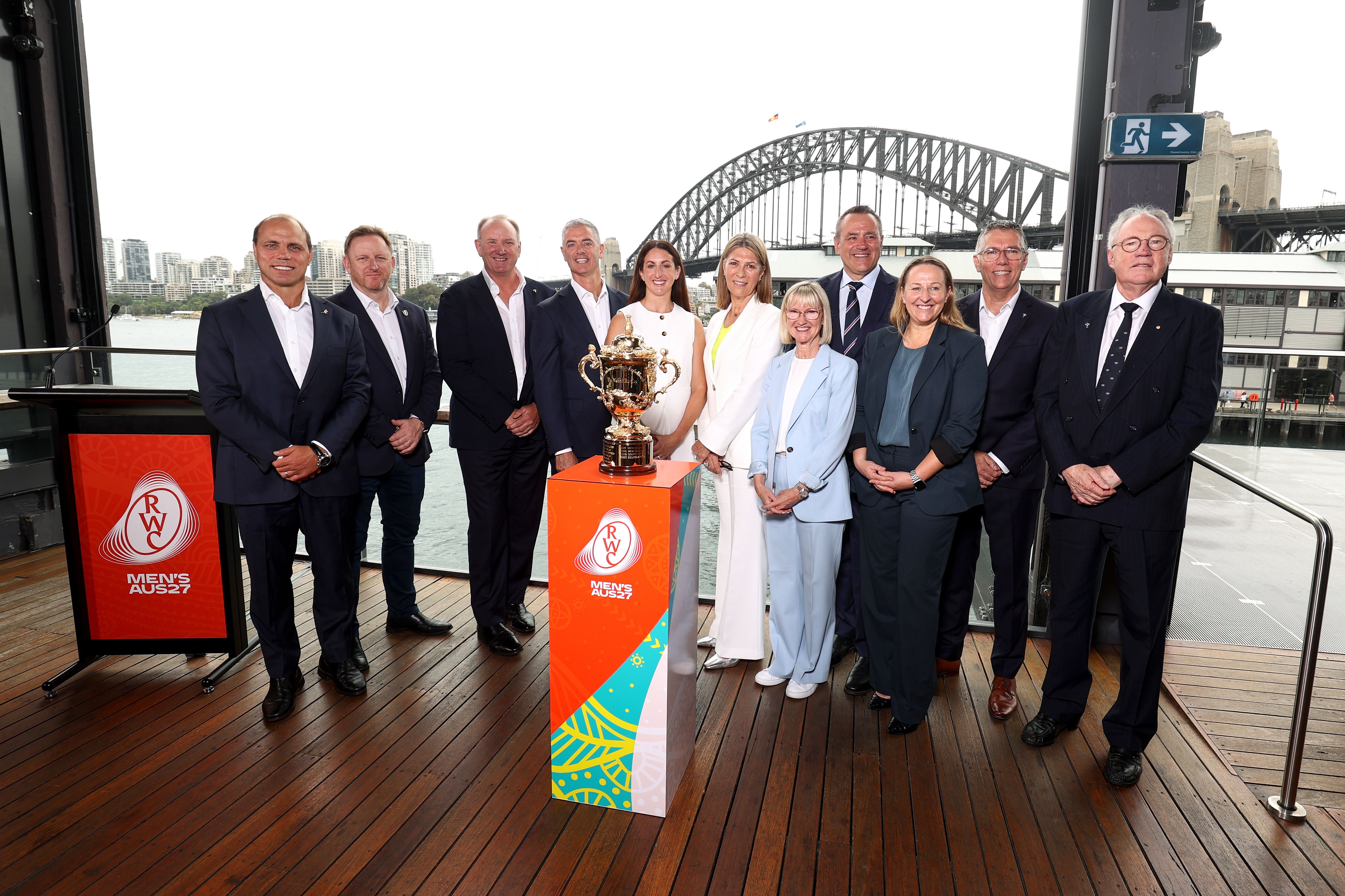 For the host cities announcement, the Webb Ellis Cup was brought to Sydney/Gadigal: