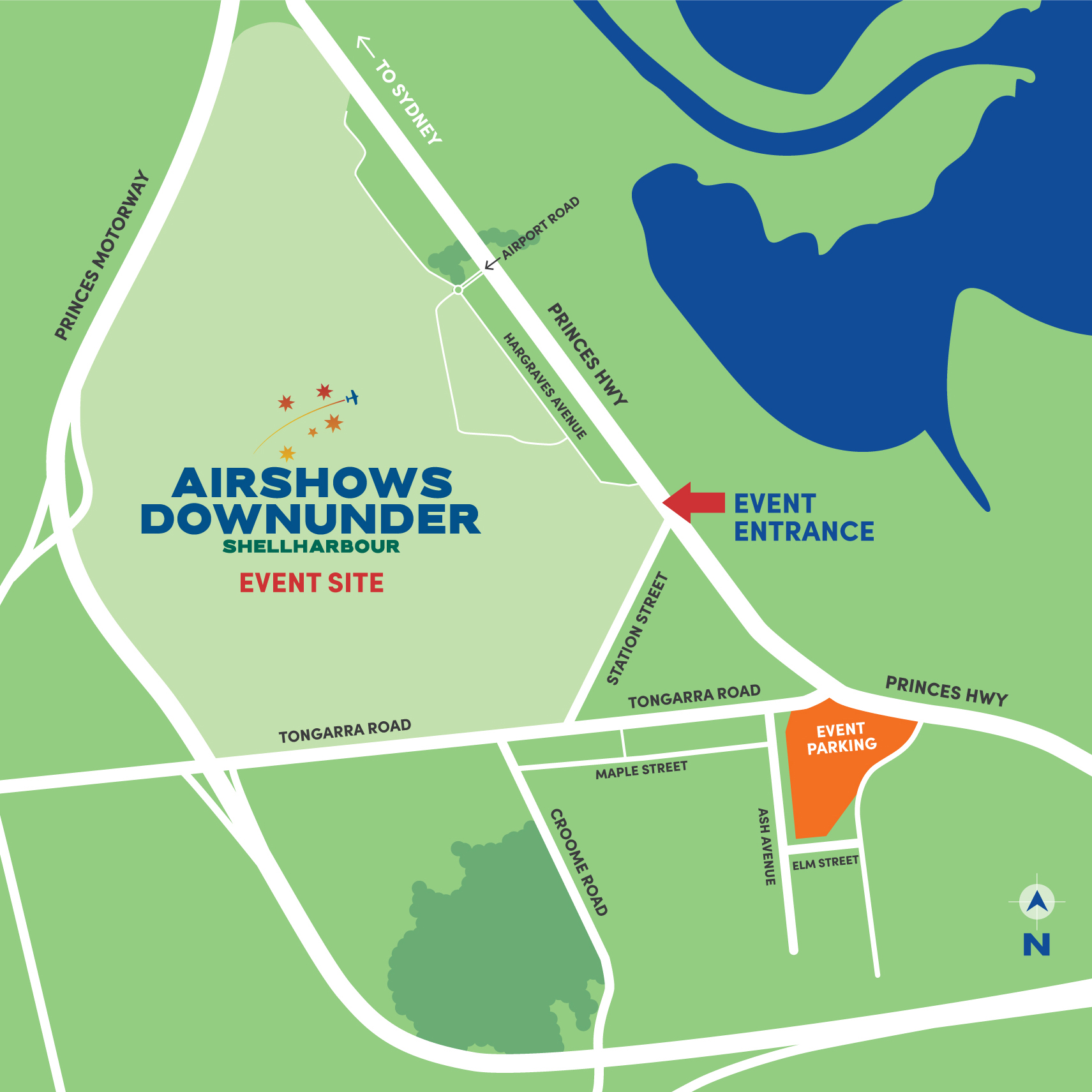 To get to Albion Oval via the Princes Motorway, the quickest way to the event parking is via the Princes Highway offramps. The Tongarra Road/Illawarra Highway offramps are a slightly longer drive despite being the most obvious offramps on the map above. A free shuttle bus to/from the air show will still operate from the GA Event Parking.