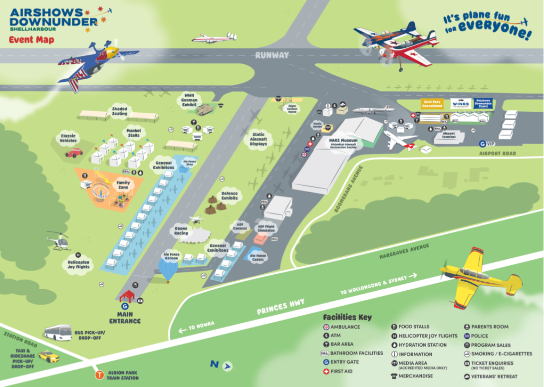 ‘Airshows Downunder Shellharbour’ 2024 Public Air Show Day Event Map Map: Airshows Downunder Shellharbour