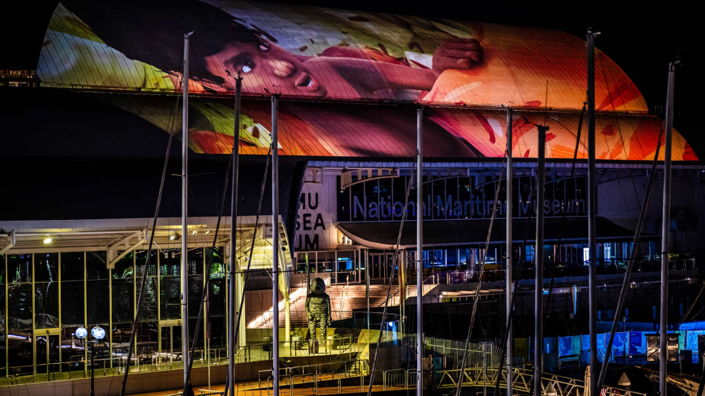 Barani, an Indigenous computer animation show projection mapped onto the roof of the Australian National Maritime Museum during Vivid Sydney 2024 – Humanity, has joined the Museum permanently, though not on its roof.