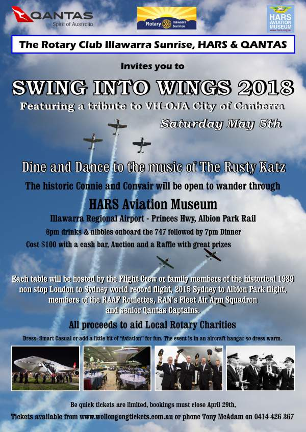 - 5 incredible ‘money can’t buy’ auction items, including the chance to personally meet John Travolta when he flies his Boeing 707 into Shellharbour Airport; a 2 hour simulator session at the Qantas Flight Training Centre; and enjoy a special dinner hosted by 3 senior Qantas Captains at Centro CBD.