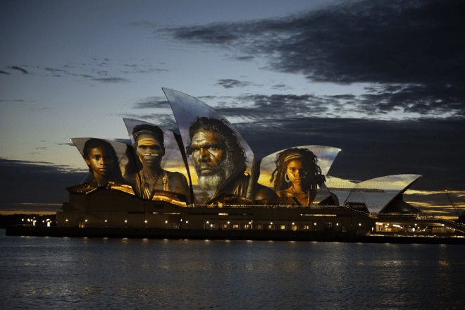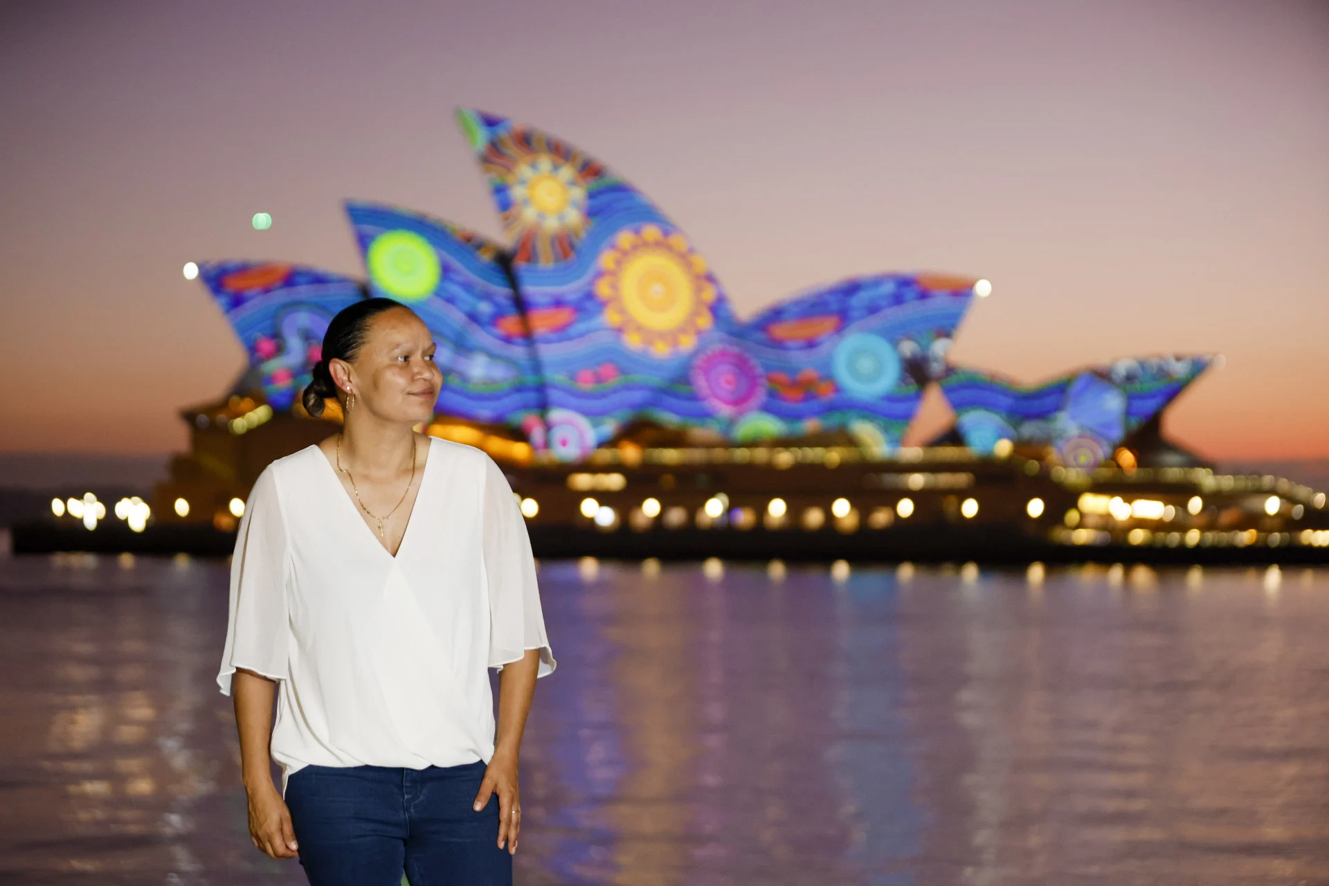 NSW artist, Frances Belle-Parker, was commissioned to create the artwork. Ms Belle-Parker, a proud Yaegl woman, mother and artist from Maclean on the Clarence River said she is proud to have designed the projection to represent the oldest living culture in the world.