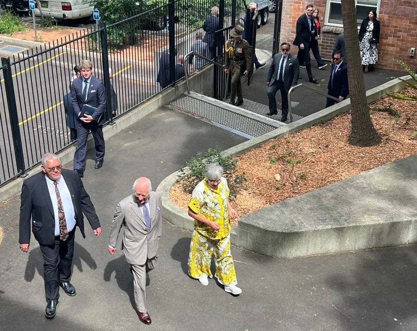 Before that, at 10:35am, King Charles & Queen Camilla left Admiralty House separately by car. 10 minutes later, the Queen visited Refettorio, a restaurant in Surry Hills run by OzHarvest, a food rescue organisation, while at 10:50am the King visited Redfern’s National Centre of Indigenous Excellence, where he met dignitaries, including the Chief Executive Officer of the National Indigenous Australians Agency, Jody Broun, was welcomed to Country & participated in a smoking ceremony. He also privately met Elders.