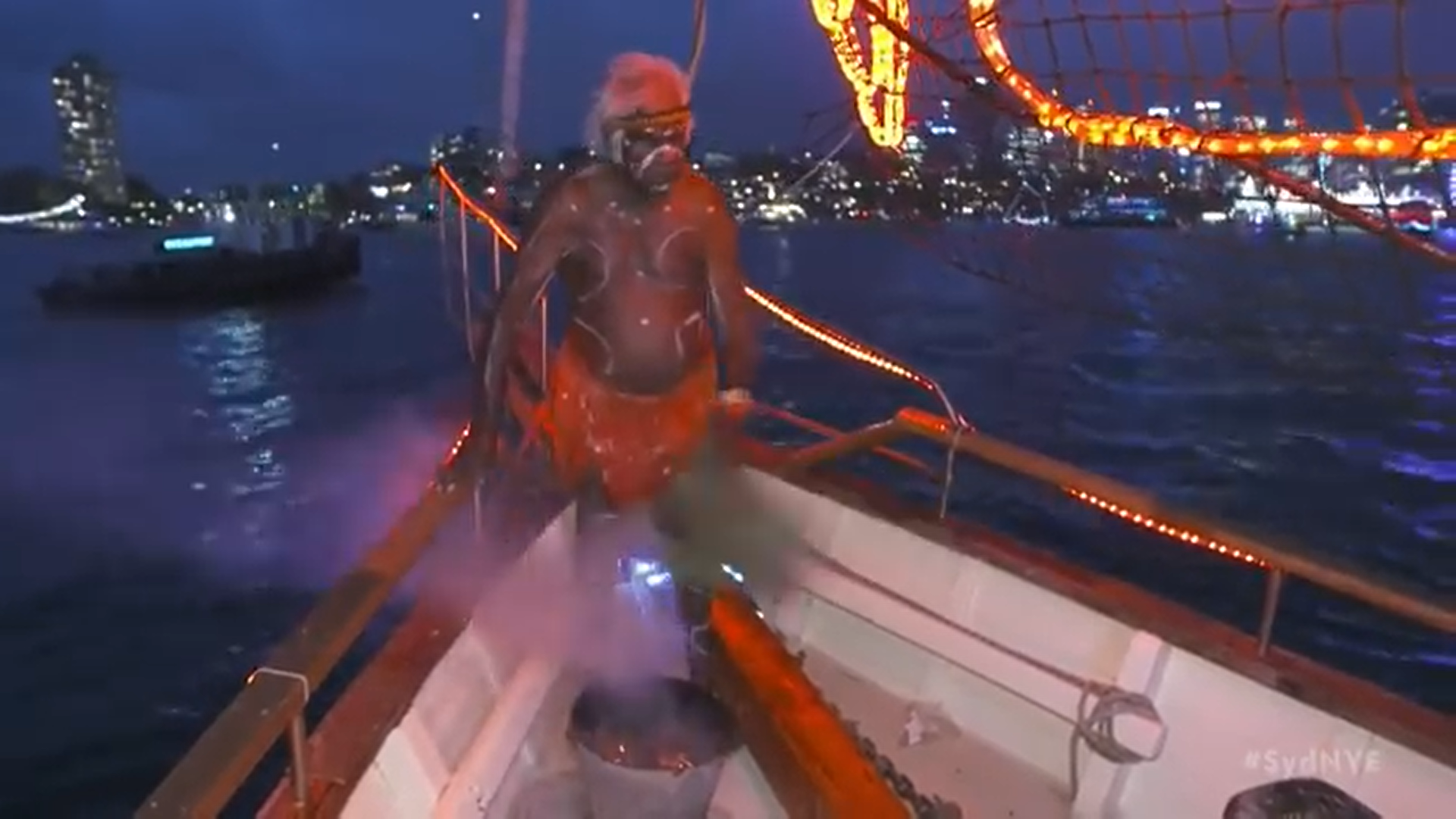 Smoking Ceremony conducted onboard Tribal Warrior during the Welcome To Country of Sydney NYE2017 – Wonder Photograph: City Of Sydney