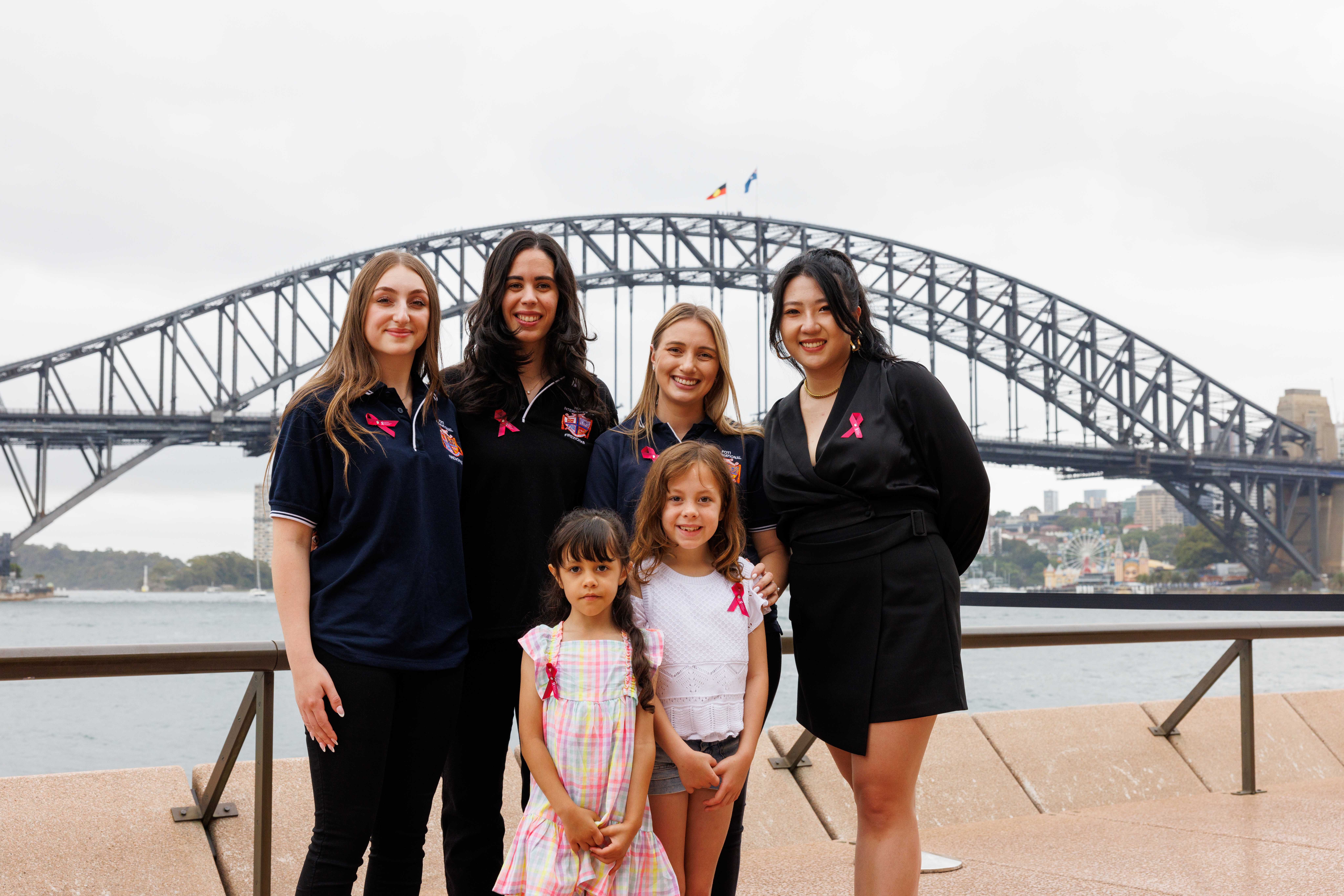 From left to right: Nicolette Anastasio (nee Foti), Elena Colosi (nee Foti), Calula Webster, Olivia Webster, Georgia Rapisarda (nee Foti), Luna Pan Photograph: Pheobe Pratt/Sydney New Year’s Eve